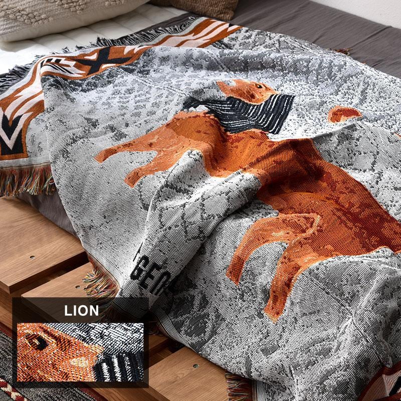 価格固定!!【定価¥6,380-】スローケット ひざ掛け 羽織り ケット 90×150cm 上掛けケット ブランケット 総柄 デザイン トライバル柄 エスニック タイガー トラ 洗える おしゃれ 長方形