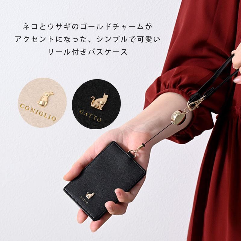 毎週火曜日にどんどん半額!!【定価¥2,090-】ミニパスケース 合皮 定期入れ レディース リール付き 動物 icカード 猫 ねこ うさぎ 薄い シンプル かわいい ゴールドチャーム 高校生 中学生 小学生 女の子