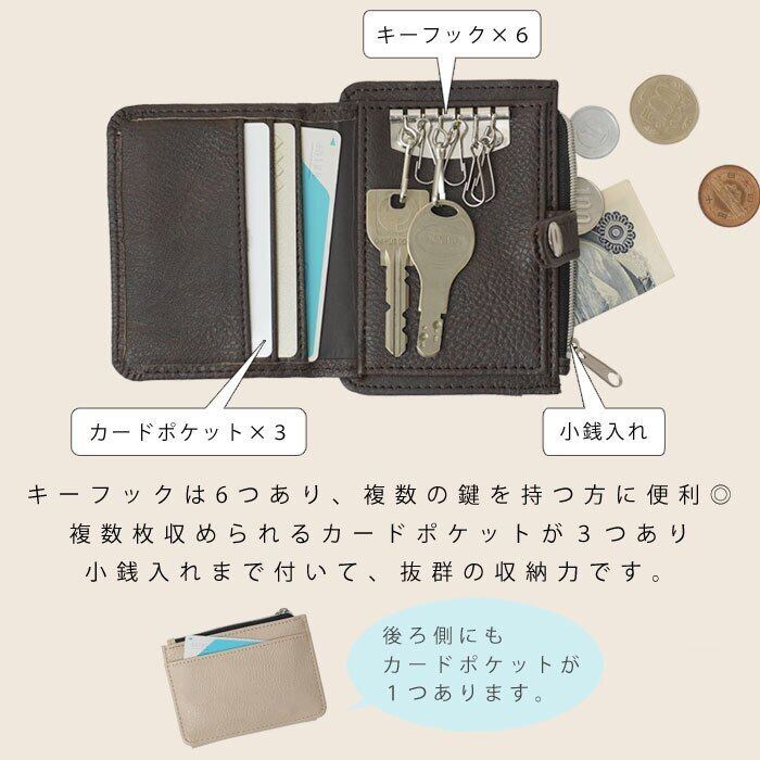 おしゃれ キーケース カード入れ 小銭入れ付き