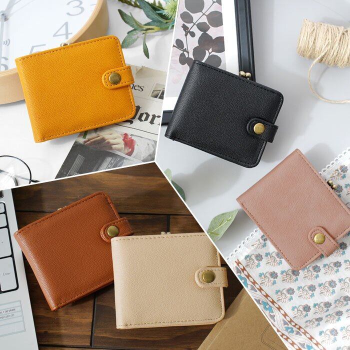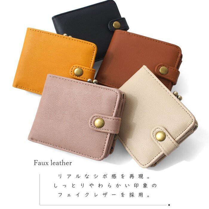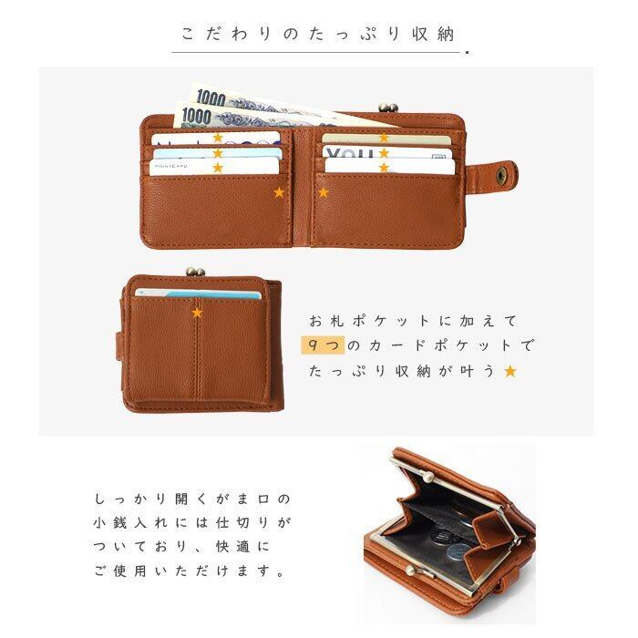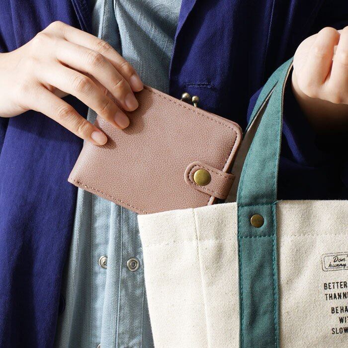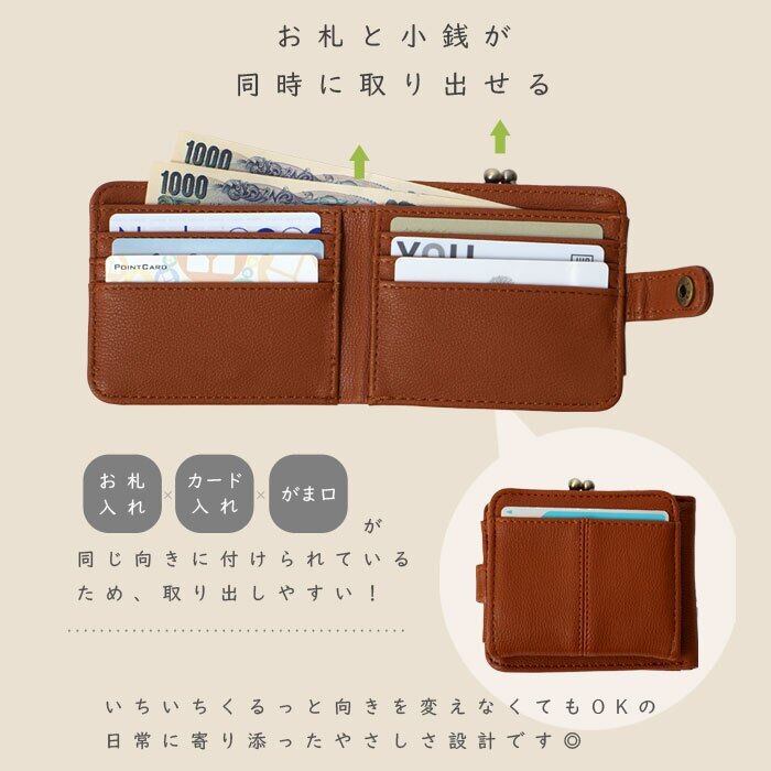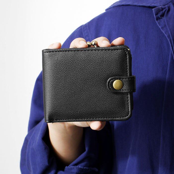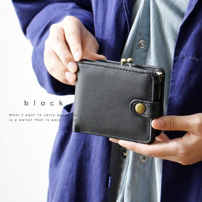 がま口財布 二つ折りウォレット 合皮