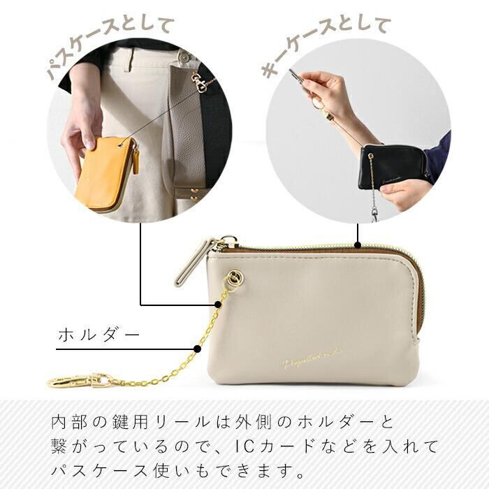 毎週火曜日にどんどん半額!!【定価¥2,200-】[ 合成皮革 リール付き パスポーチ ] パスケース パスポーチ キーケース リール付き 定期入れ icカード メンズ 薄型 小さめ おしゃれ レディース 小銭入れ コインケース 財布 カードケース 横型