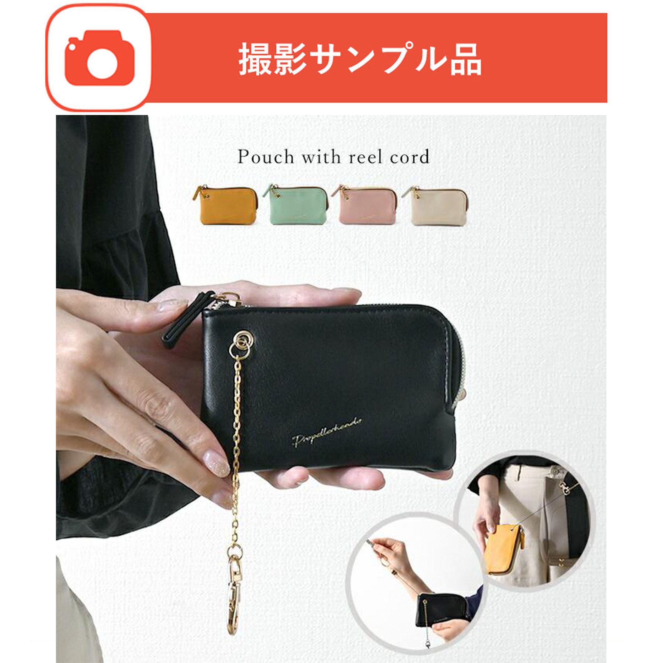 合成皮革 リール付き パスポーチ杢調 ポリ リール付き パスポーチ