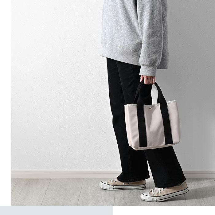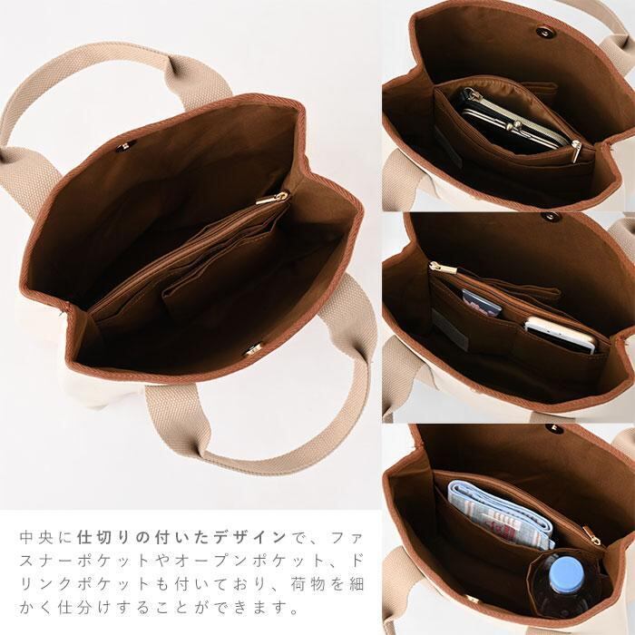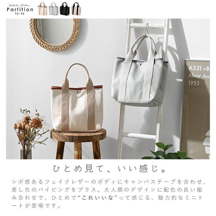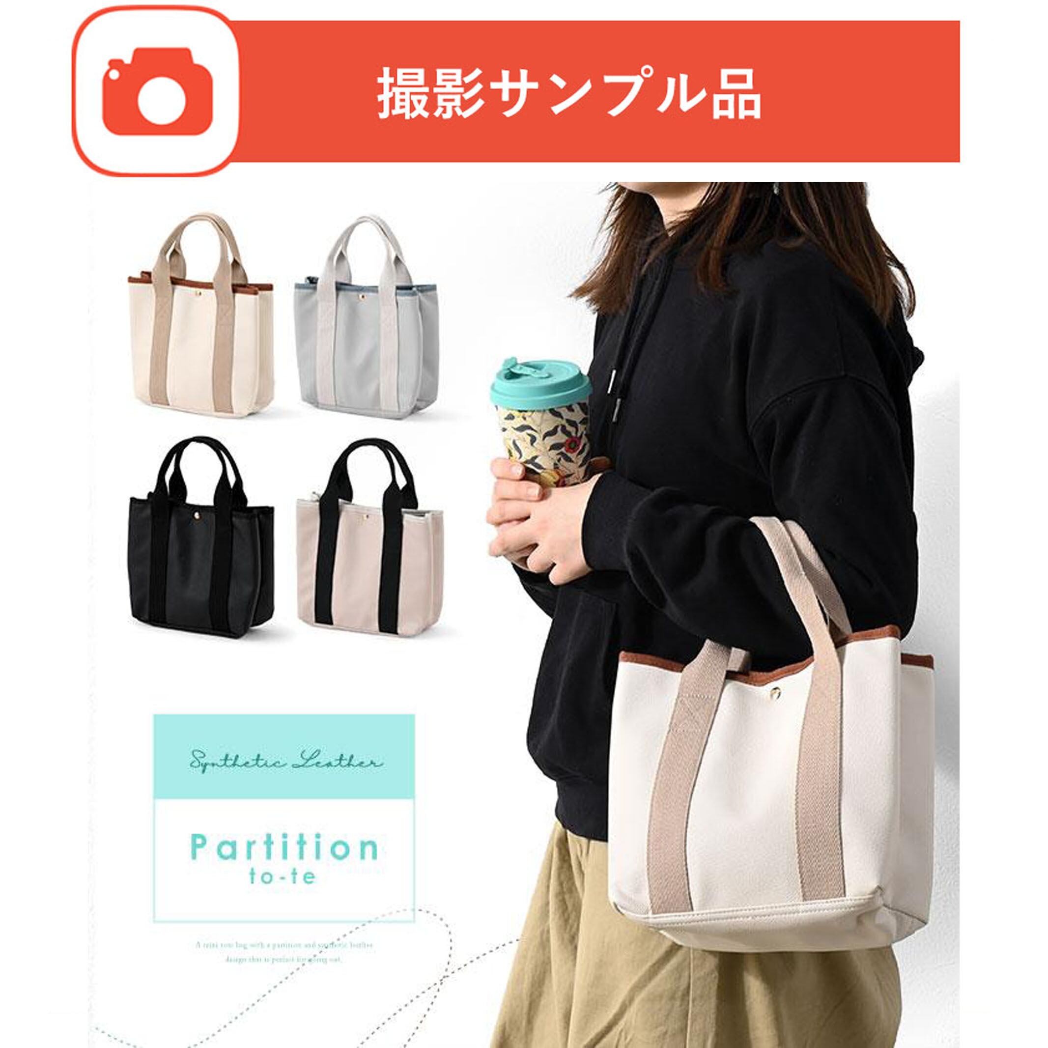 毎週火曜日にどんどん半額!!【定価2,530-】[仕切りデザイン 合皮 ミニトートバッグ] ミニトートバッグ 仕切り バッグ レディース 合皮 ミニ b5 かわいい 小さめ 布 軽い 軽量 黒 大学生 中学生 大人 女子高生 ポケット おしゃれ ハンドバッグ