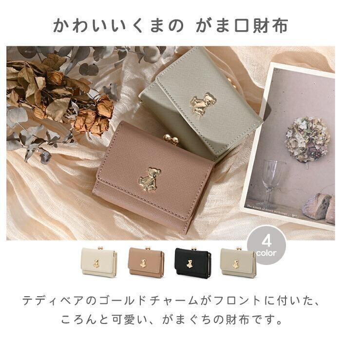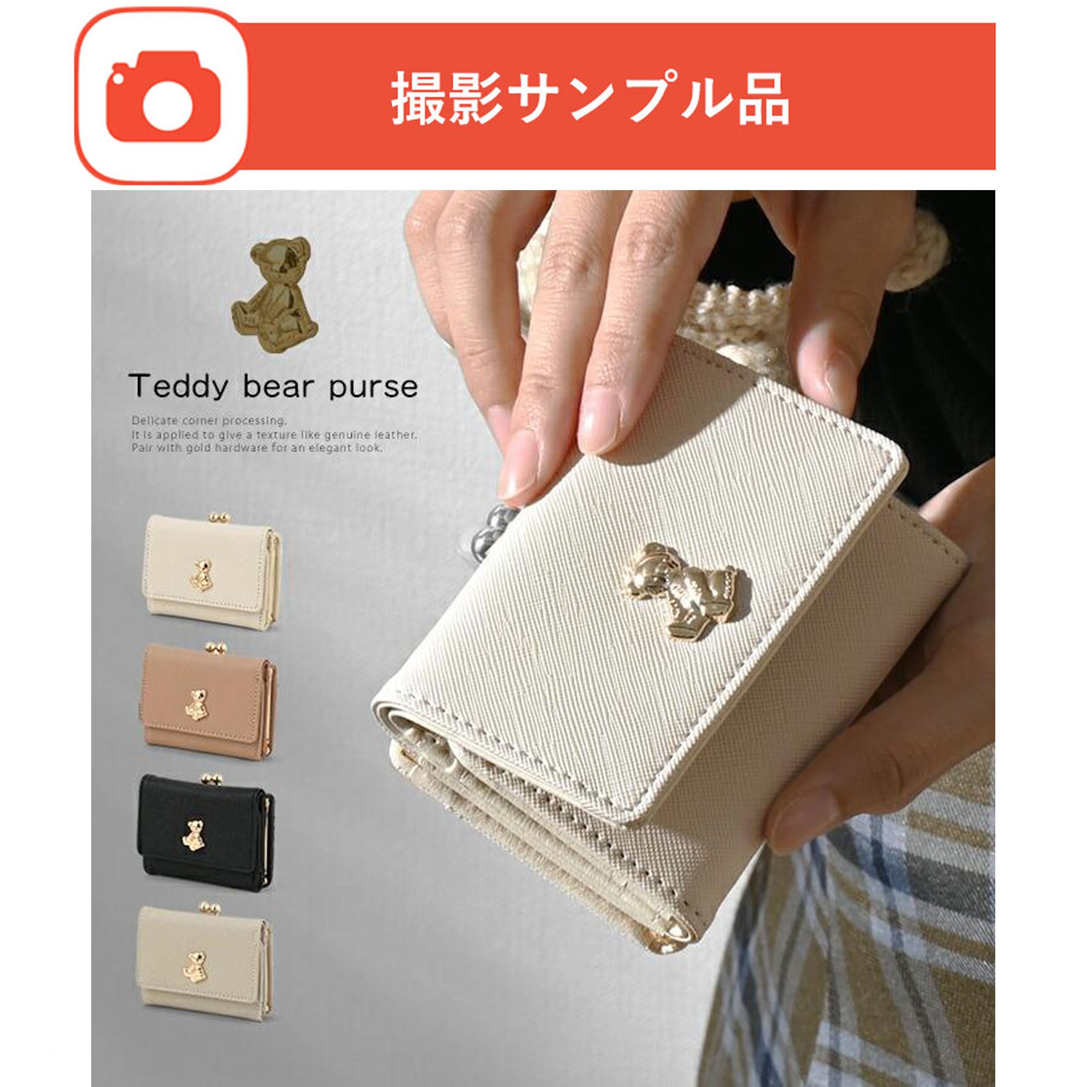 毎週火曜日にどんどん半額!!【定価¥3,520-】[くま 財布 がま口 三つ折り ] くま 財布 がま口 三つ折り レディース かわいい ミニ 小さい コンパクト おしゃれ 折りたたみ カード入れ 小銭入れ コインケース クマ テディベア がまぐち