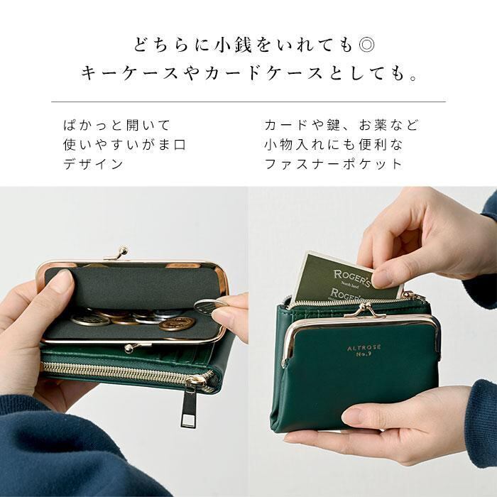 毎週火曜日にどんどん半額!!【定価¥2,400-】[がま口 合皮 二つ折り財布 ALTROSE]がま口 財布 二つ折り レディース 二つ折り財布 がま口財布 ミニ財布 ファスナー 小銭入れ がまぐち さいふ 使いやすい コンパクト 小さい 小さめ 2つ折り