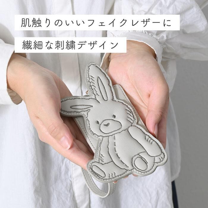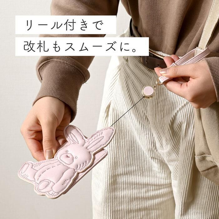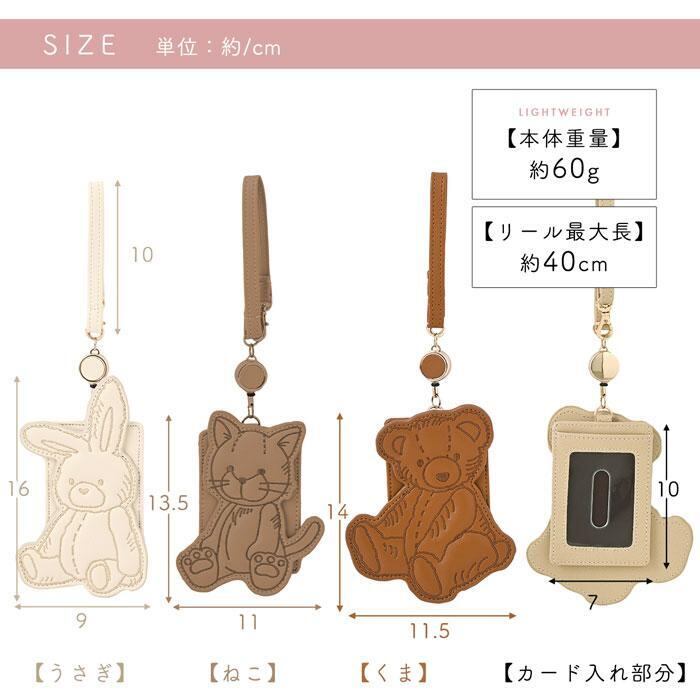 毎週火曜日にどんどん半額!!【定価¥2,750-】[パスケース リール付き] パスケース 定期入れ リール付き レディース 動物 刺繍 猫 うさぎ ネコ 伸びる おしゃれ かわいい 大人 子供 子供用 キッズ 合皮 レザー ポケット カードケース