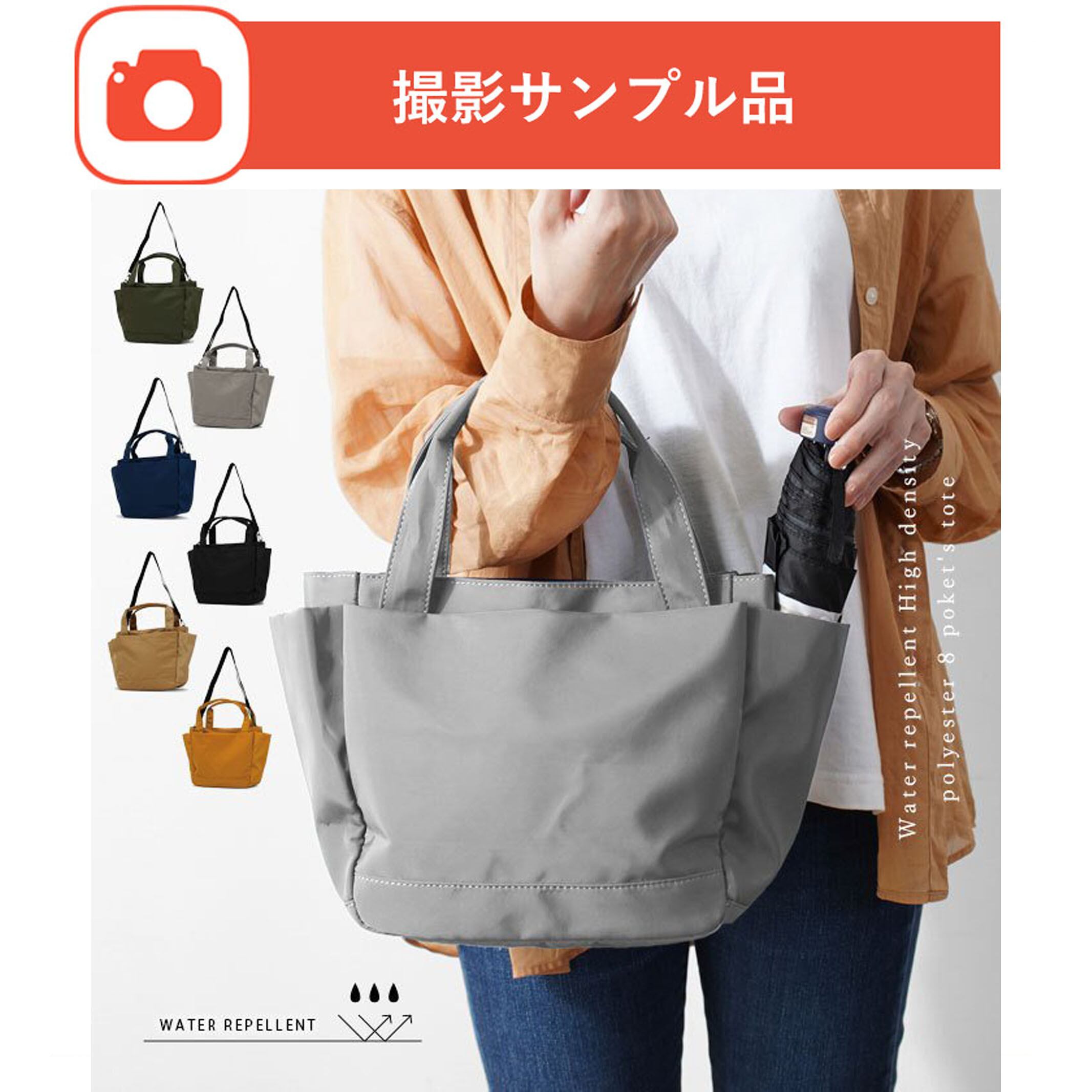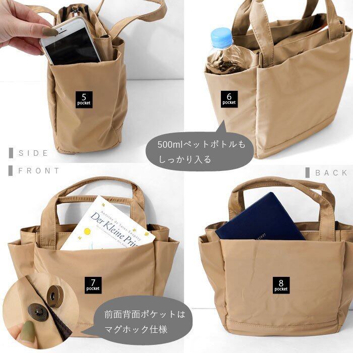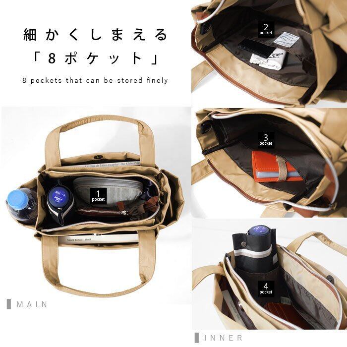 はっ水 高密度ポリエステル 8ポケット 2WAY トートバッグ