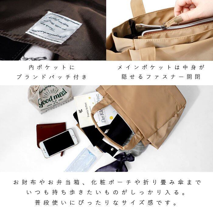毎週火曜日にどんどん半額!!【定価¥3,630-】[ はっ水 高密度ポリエステル 8ポケット 2WAY トートバッグ ] トートバッグ ミニ ショルダー 2way レディース 小さめ 軽量 黒 メンズ 布 撥水 軽い ファスナー付き 多収納ポケット おしゃれ チャック付き ハンドバッグ