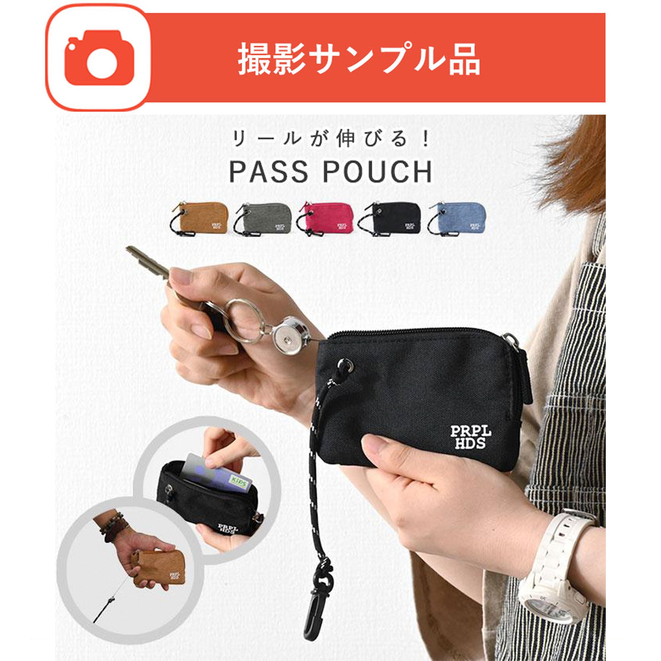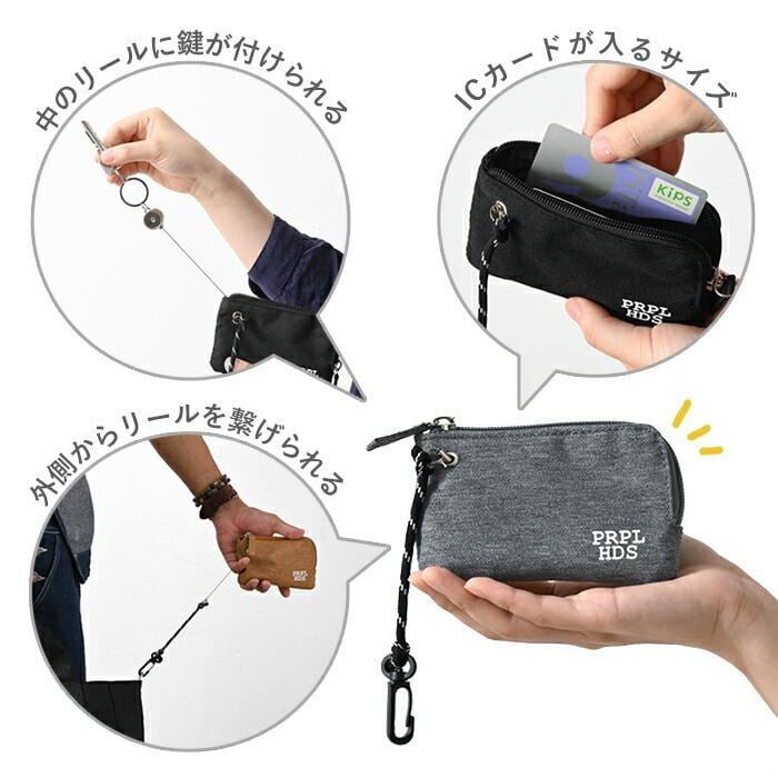 杢調 ポリ リール付き パスポーチ