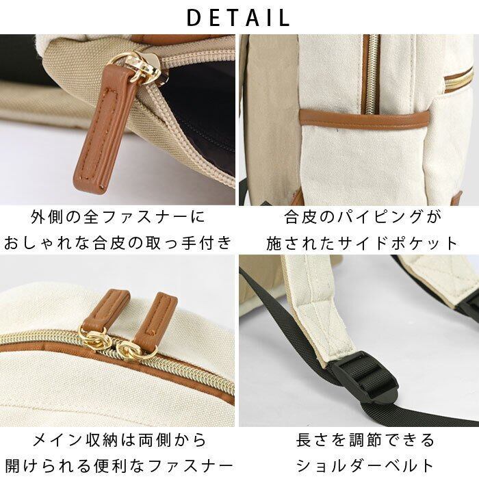 毎週火曜日にどんどん半額!!【定価¥4,290-】[ キャンバス×合成皮革 リュック 8ポケット 2層 ] リュック キャンバス 合皮 2層 8ポケット おしゃれ 軽量 レディース バックパック リュックサック デイパック マザーズバッグ パイピング フェイクレザー